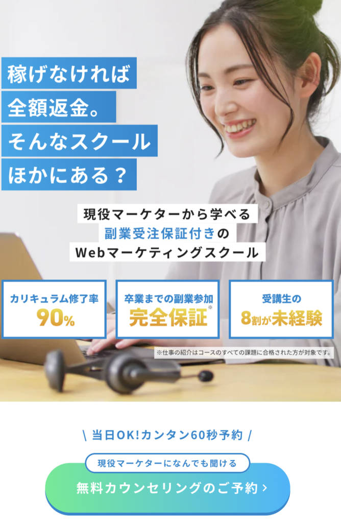 副業・フリーランス目的の方は案件紹介があるなどサポートも手厚いため、ぜひ無料カウンセリングにご参加ください。