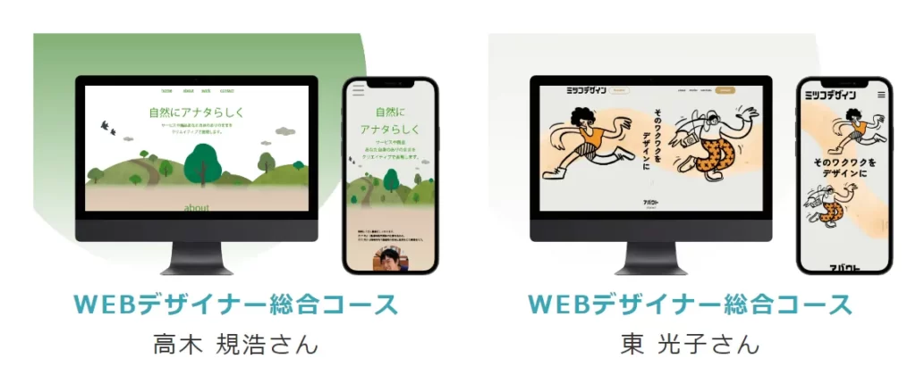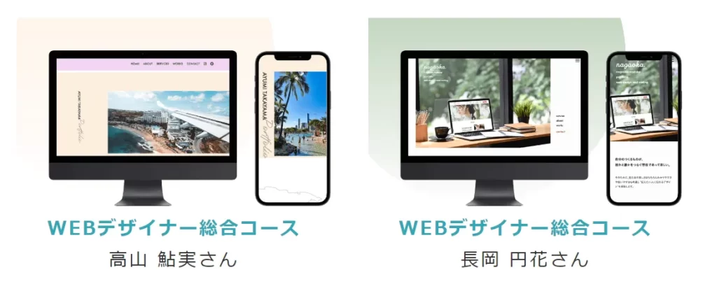 4ヶ月のカリキュラムを通じて、オリジナルサイトを含む5つの実績が作れるのも大きなポイント。