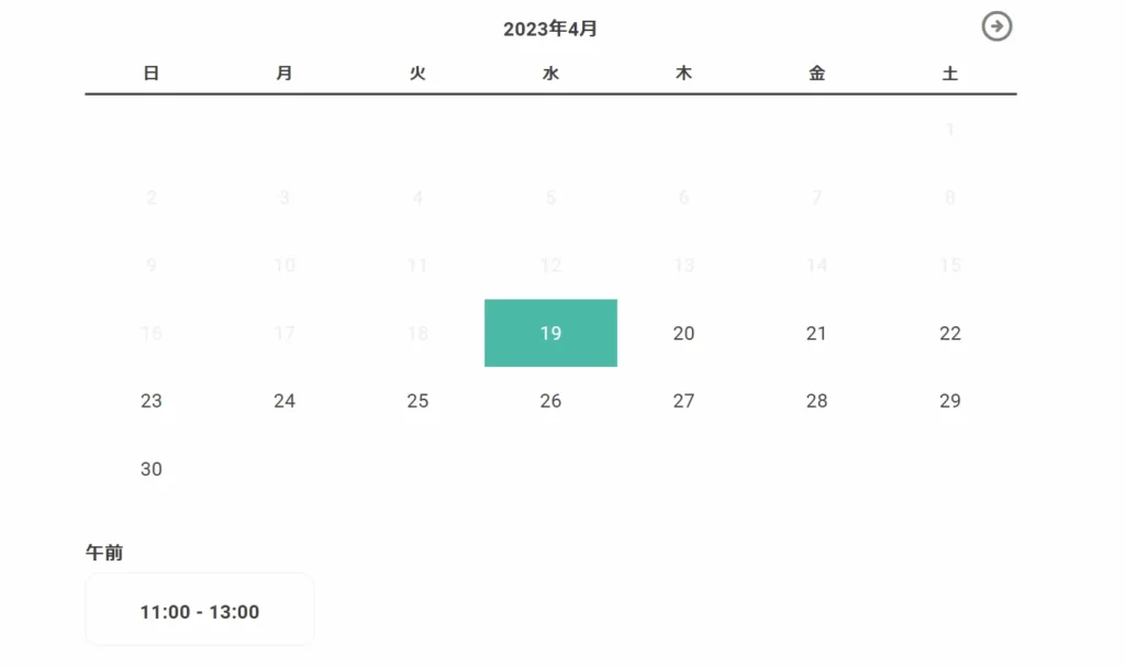オンライン説明会についての注意事項が記載してあるところから下にスクロールすると、カレンダーが出てきます。