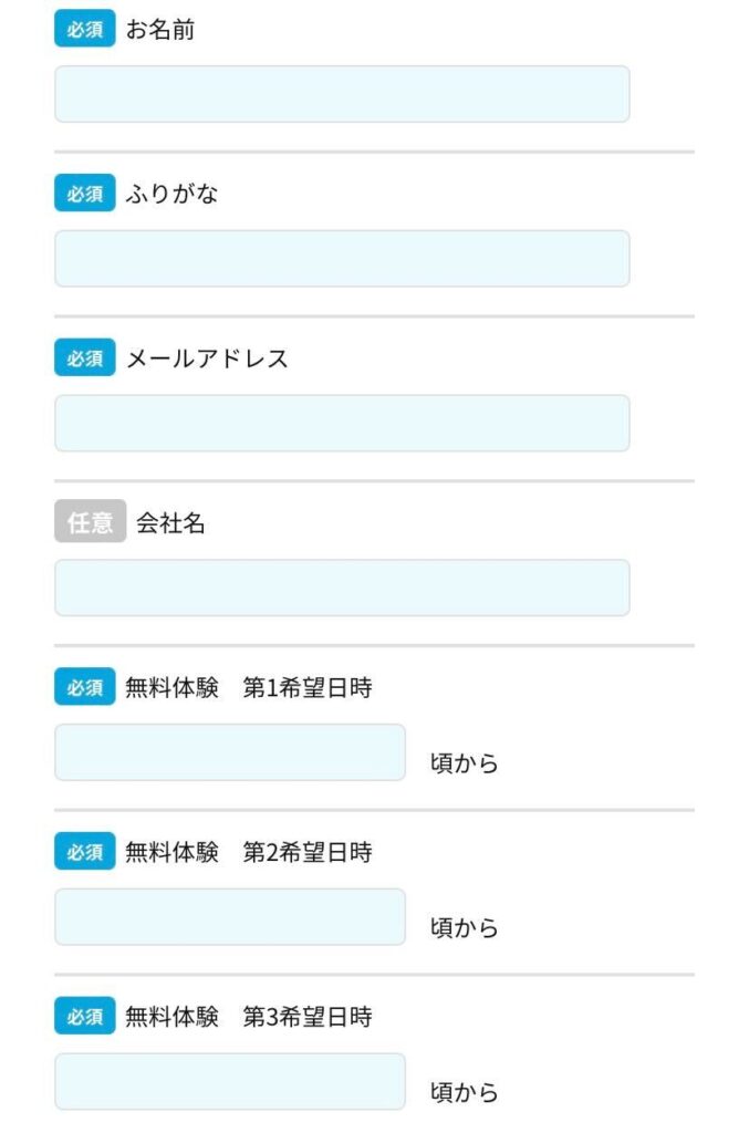 個人情報と無料体験の希望日時を第3希望まで入力します。