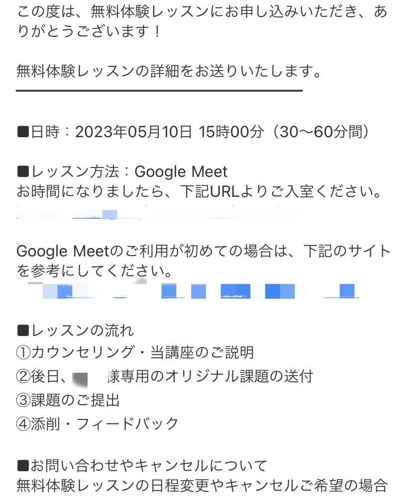 しばらくすると、無料体験レッスンの詳細についてメールが届きます。
