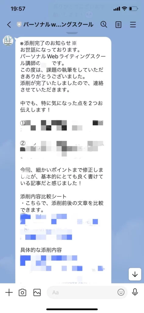 無料添削でここまで丁寧にしてもらえるとは思わず、驚きでした!