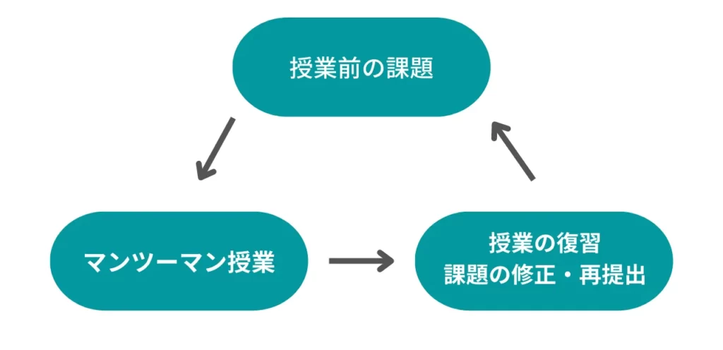 プロクリでは「授業前の課題→FBベースのマンツーマン授業→授業の復習・課題の修正・再提出」というサイクルを繰り返します。