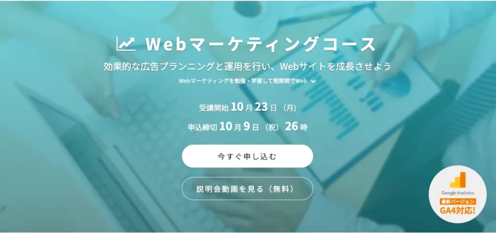 プログラミングスクール大手のテックアカデミーが母体となっているWebマーケティング講座です。