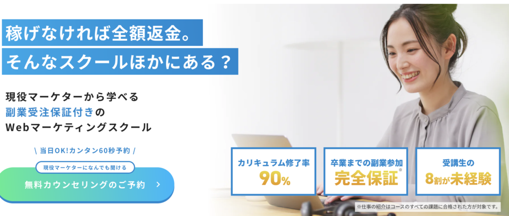 カリキュラムの分厚さやサポートの手厚さの面で他のスクールより優れているため、Webマーケターとして上流を目指していきたい方におすすめです。